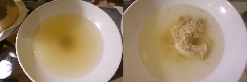 ■スープ:ピンク<緑。⇒緑のスープに入っている具は骨の回りの身ではあるものの、しっかり食感があり「具」として楽しめる。またピンクのスープは香辛料(胡椒?)が妙に主張していてややクセがある感じ。